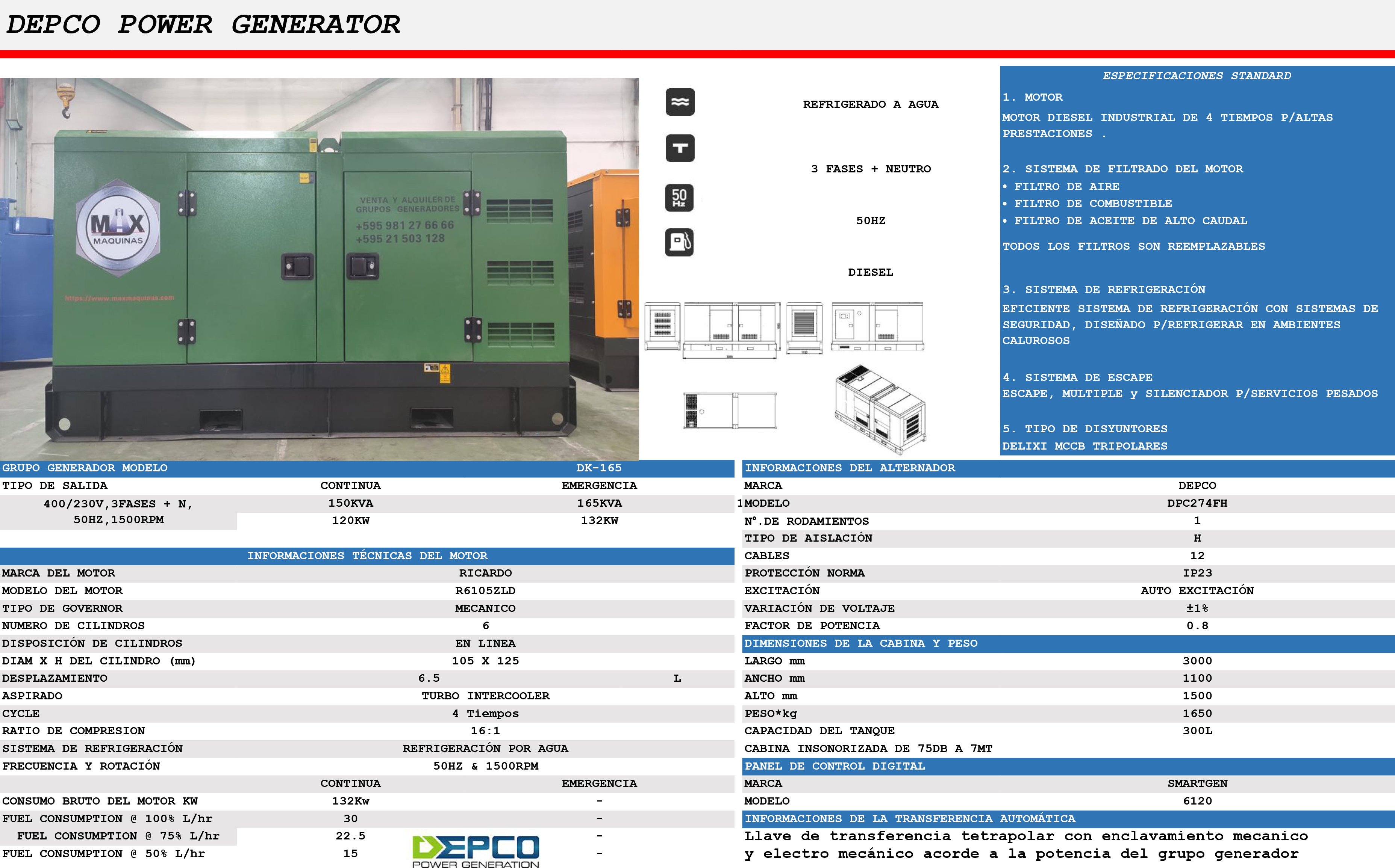 MechanicalSilencieux 120 kW/150 kVA RICARDO Générateur diesel DK-165