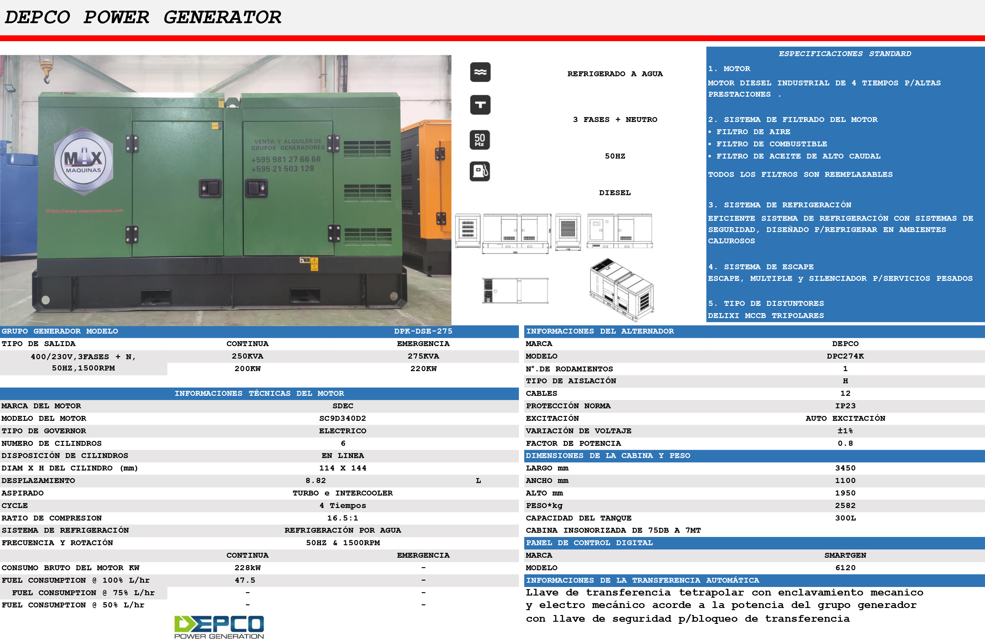 Générateur diesel SDEC de 275 kVA
